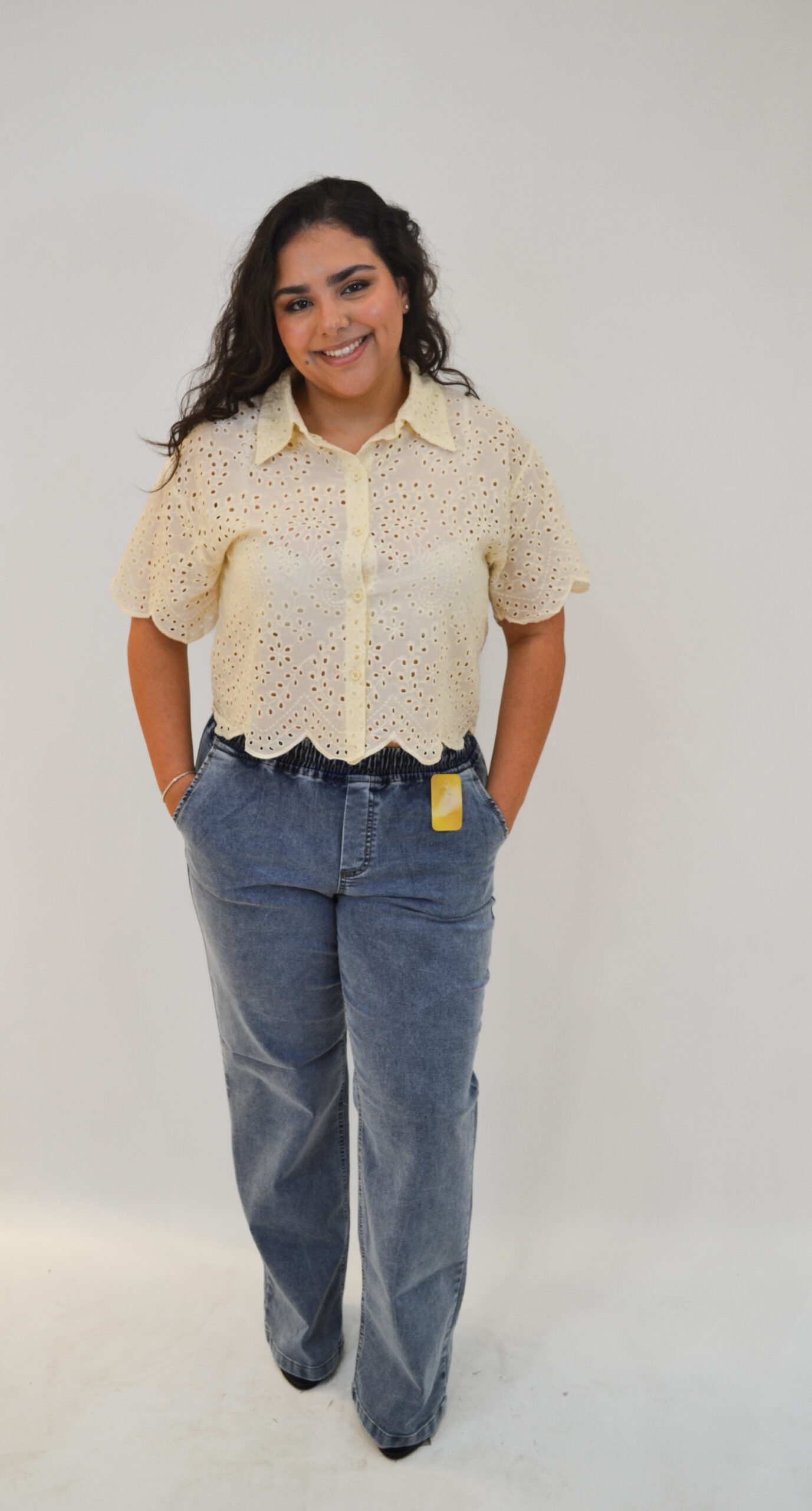 ¡Descubrí el Jean Dany, la prenda que redefine el estilo relajado y moderno. Este modelo wide leg (pierna ancha) se caracteriza por su silueta suelta y fluida, que cae recta desde la cadera hasta el bajo, brindando una comodidad y libertad de movimiento excepcionales. Confeccionado en un suave y adaptable denim elastizado, este jean se ajusta perfectamente a tu cuerpo, realzando tu figura sin sacrificar el confort. El distintivo lavado nevado le otorga un look canchero, con un aspecto ligeramente desgastado que añade textura e interés visual a cualquier conjunto. Es una prenda versátil y atemporal, ideal para cualquier edad, que te permite crear outfits tanto casuales como más arreglados.